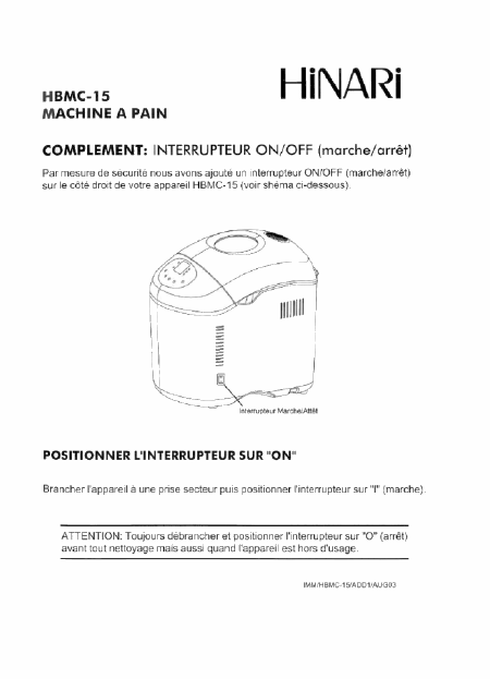 HINARI HBMC-15 Mode emploi Français