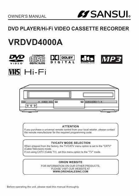 SANSUI VRDVD4000A Mode emploi Anglais