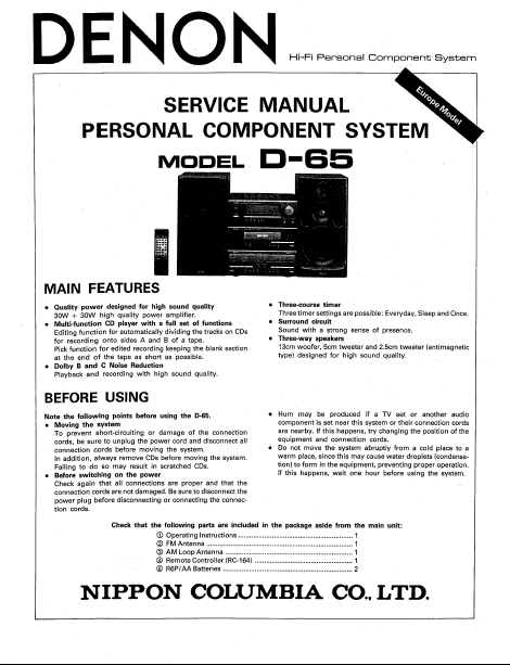 Descargar DENON D-65 Manual de taller Inglés (107 Páginas) 39.90 EUR