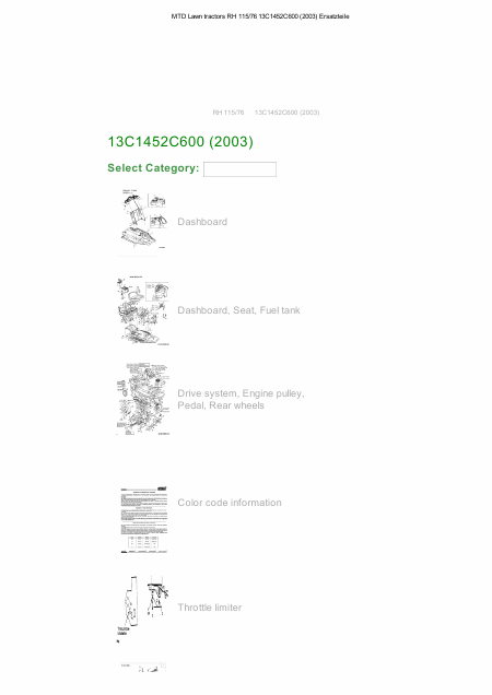 Baixar MTD RH115/76 13C1452C600 (2003) Lista de peças Inglês (24 Pages) 15.90 EUR