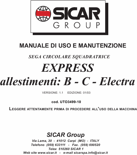 SICAR EXPRESS (B / C / Electra) Users Guide Italian