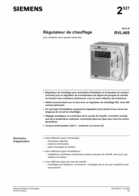 Descargar SIEMENS RVL469 Manual de instalación Francés (8 Páginas) 12.90 EUR