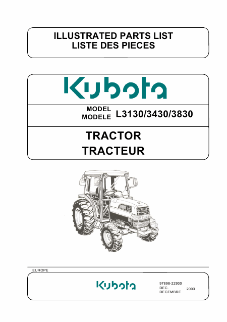 Download KUBOTA L 3830 (L3830) Spare Parts (IPL) German (400 Pages) 39.90 EUR