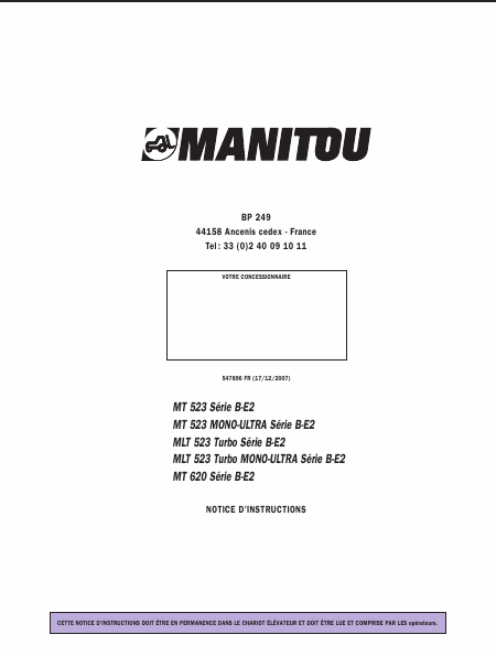 MANITOU MT 620 Serie B-E2 Anleitung Französisch