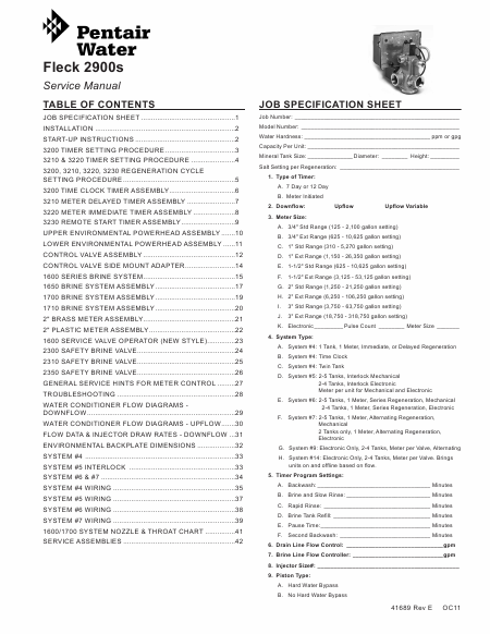 Download PENTAIR WATER Fleck 2900s Service Manual English (44 Pages) 15.90 EUR