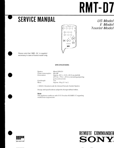 SONY RMT-D7 Manuel de service Anglais