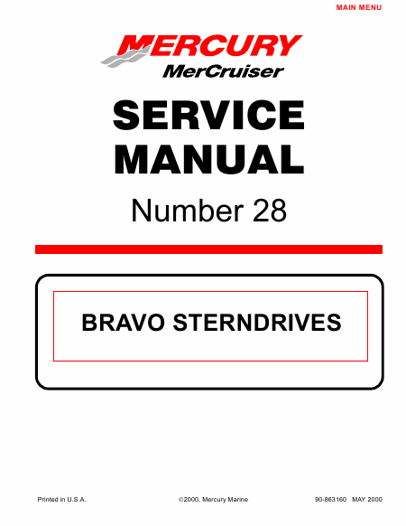 Descargar MERCURY Mercruiser Num. 28 Bravo Sterndrives (2000) Manual de taller Inglés (596 Páginas) 39.90 EUR