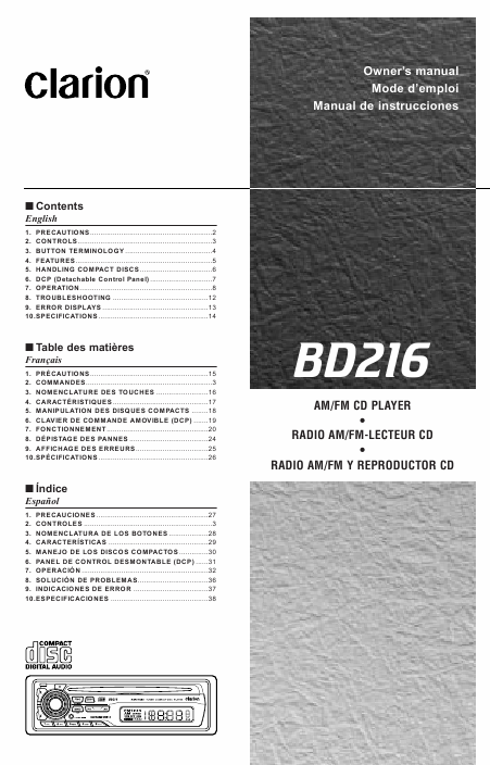 Download CLARION BD216 Users Guide English (13 Pages) 15.90 EUR