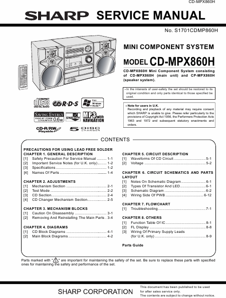 Download SHARP CD-MPX860 Service Manual English (118 Pages) 39.90 EUR