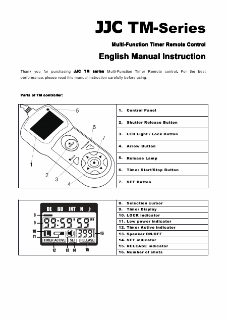 Scaricare JJC TM-Series Istruzione Inglese (7 Pagine) 12.90 EUR