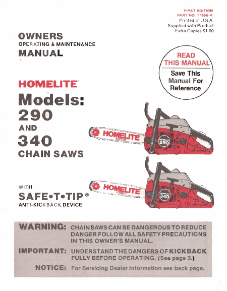 Download HOMELITE 340 Anleitung Englisch (41 Seiten) 39.90 EUR