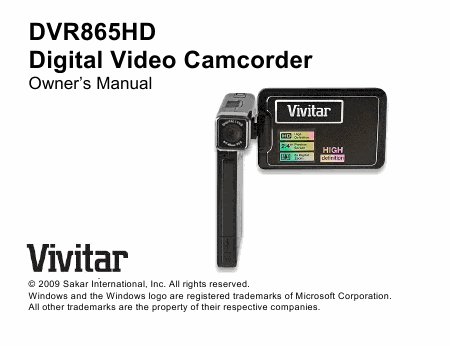 VIVITAR DVR 865HD (DVR865HD) Mode emploi Anglais