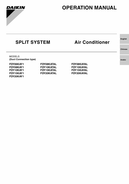 Descargar DAIKIN FDY10KAY1 Guía del usuario Inglés (11 Páginas) 12.90 EUR