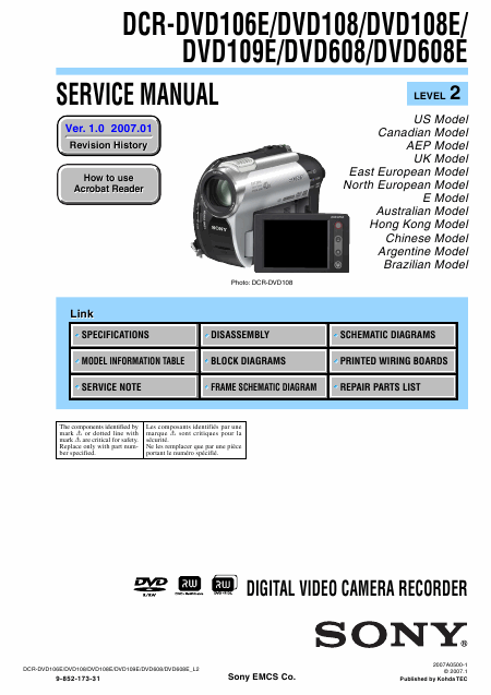 SONY DCR-DVD608E (DCRDVD608E) Service Manual English