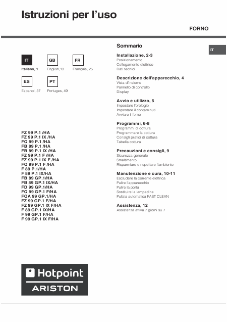 Download ARISTON F 89 GP.1 IX /HA Anleitung Französisch (12 Seiten) 12.90 EUR