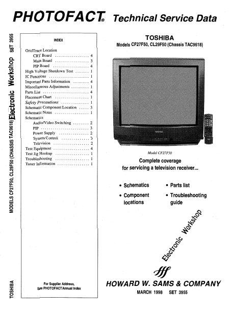 Download TOSHIBA CF27F50 (Chassis TAC9618) Serviceanleitung Englisch (17 Seiten) 15.90 EUR