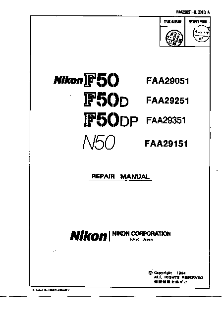 Telecharger NIKON F50 / N50 Mode emploi Anglais (153 Pages) 15.90 EUR