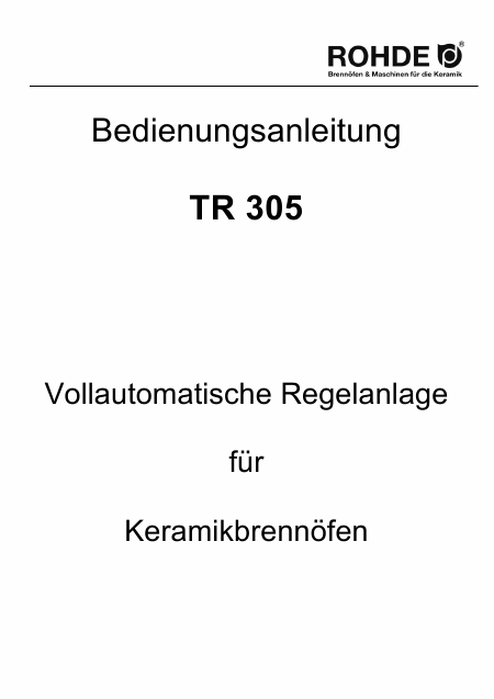 Download ROHDE TR 305 Anleitung Deutsch (9 Seiten) 12.90 EUR