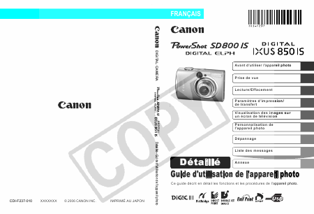 Baixar CANON PowerShot SD800 IS Instruções Francês (147 Pages) 15.90 EUR
