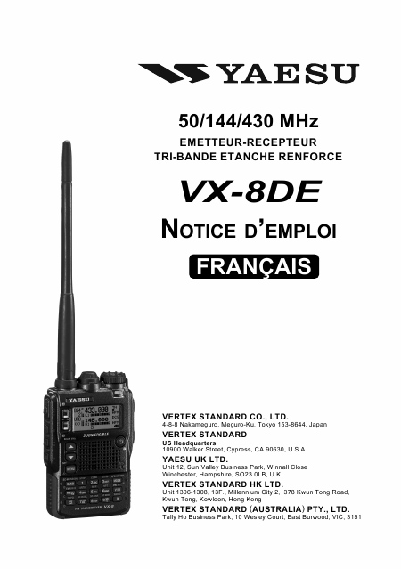 Download YAESU VX-8DE Anleitung Französisch (180 Seiten) 59.90 EUR