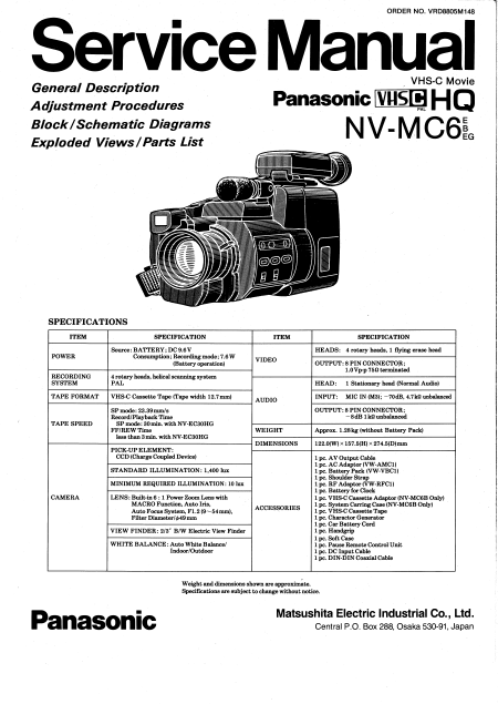 Download PANASONIC NV-MC6 Service Manual English (120 Pages) 15.90 EUR