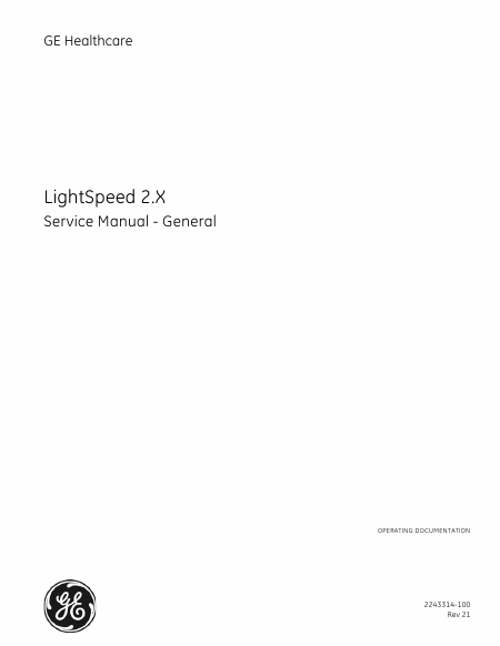 Baixar GE (GENERAL ELECTRIC) LightSpeed 2.X Manual de serviço Inglês (1032 Pages) 39.90 EUR