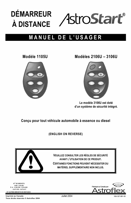 Download ASTROFLEX AstroStart 1105U Users Guide French (20 Pages) 12.90 EUR