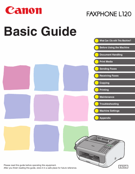 Baixar CANON FAXPHONE L120 Instruções Inglês (134 Pages) 15.90 EUR