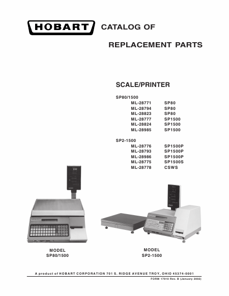 Telecharger HOBART SP80 Liste pieces detachees Anglais (24 Pages) 39.90 EUR