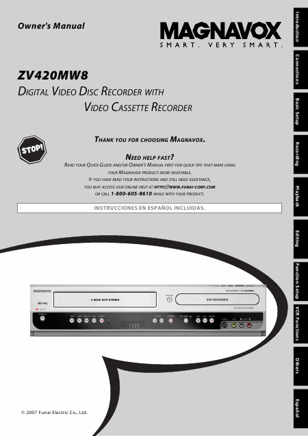 MAGNAVOX ZV420MW8 Istruzione Inglese
