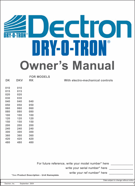 DECTRON DK / DKV / RK Istruzione Inglese