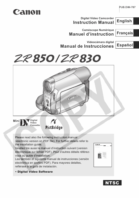 CANON ZR830 (NTSC) Mode emploi Français