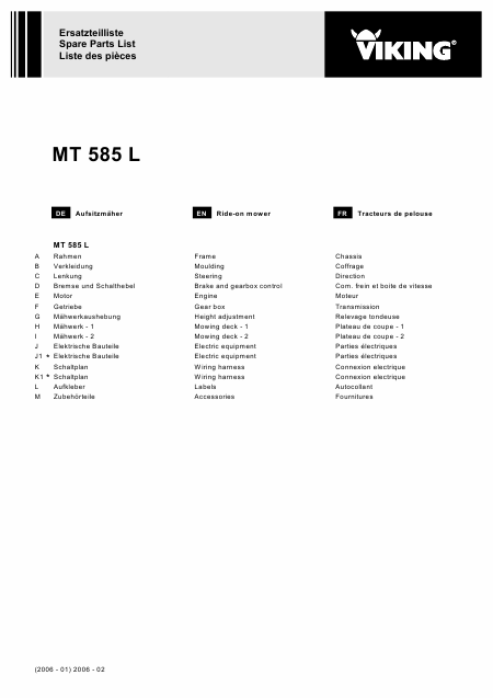 Descargar VIKING MT 585 L (MT585L) Lista de piezas de repuesto Alemán (49 Páginas) 15.90 EUR