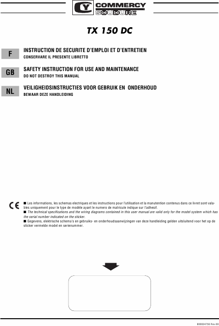 COMMERCY TX 150 DC Users Guide French