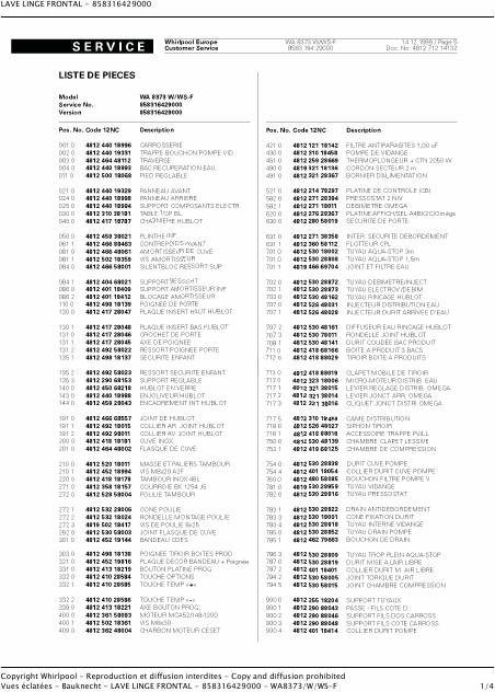 BAUKNECHT WA 8373 Spare Parts (IPL) French