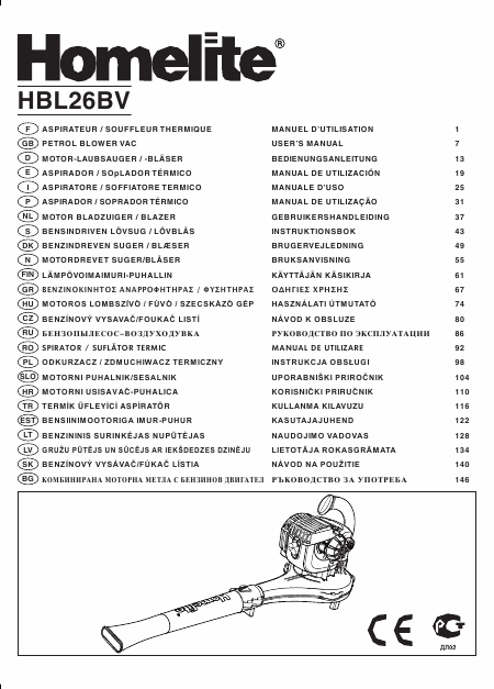 Baixar HOMELITE HBL26BV Instruções Espanhol (4 Pages) 12.90 EUR
