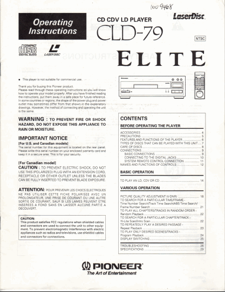 PIONEER CLD-79 Users Guide English
