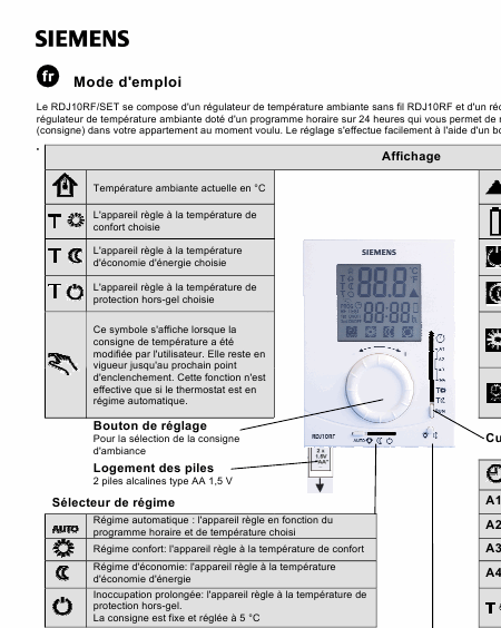 Telecharger SIEMENS RDJ10RF/SET Mode emploi Français (2 Pages) 12.90 EUR