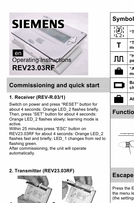 SIEMENS REV23RF (REV23.03RF) Guía del usuario Inglés