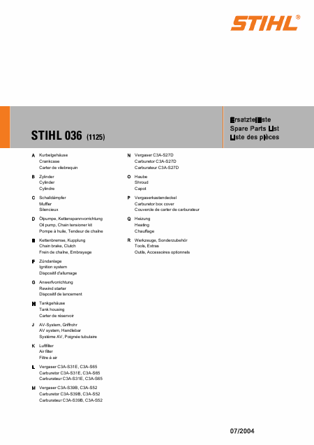 Telecharger STIHL 036 Liste pieces detachees Allemand (48 Pages) 15.90 EUR