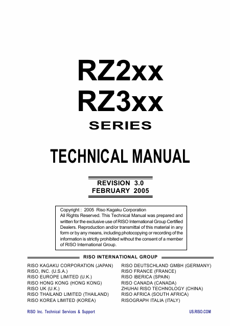 Telecharger RISO RZ 200 Series Manuel de service Anglais (376 Pages) 39.90 EUR