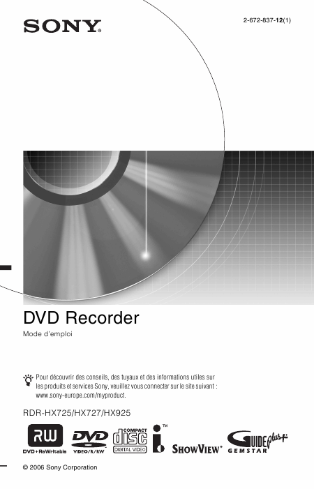 Download SONY RDR-HX925 Users Guide French (136 Pages) 12.90 EUR