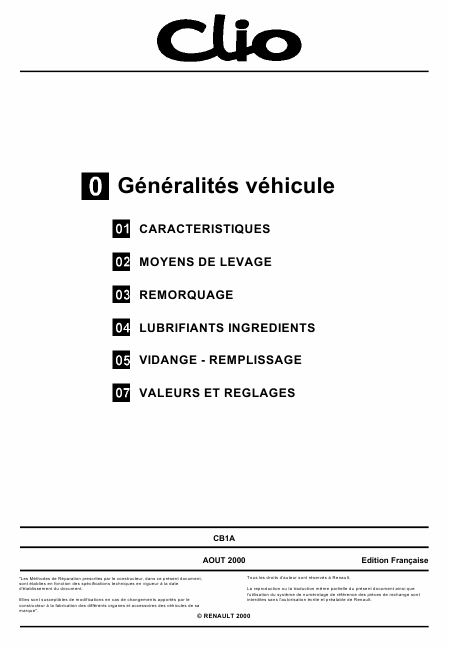 Baixar RENAULT Clio V6 Phase 1 Manual de serviço Francês (837 Pages) 39.90 EUR