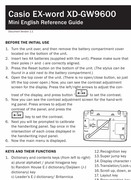 Baixar CASIO EX-word XD-GW9600 Guia de Introdução Inglês (4 Pages) 12.90 EUR