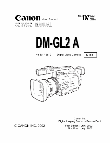 CANON GL2 (DM-GL2A) NTSC Manuale di servizio Inglese