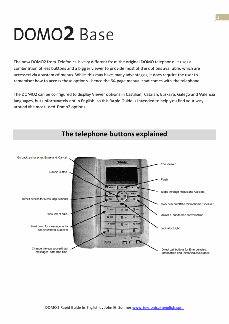 Scaricare TELEFONICA Domo 2 (Domo2) Istruzione Inglese (7 Pagine) 15.90 EUR