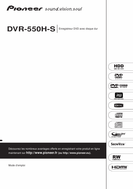 PIONEER DVR-550H-S Mode emploi Français