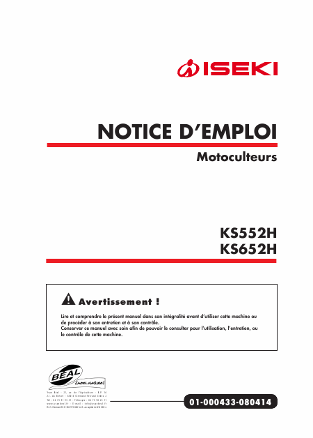 Baixar ISEKI KS 552 H (KS552H) Instruções Francês (16 Pages) 15.90 EUR