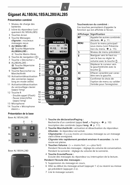 SIEMENS Gigaset AL280 Istruzione Francese