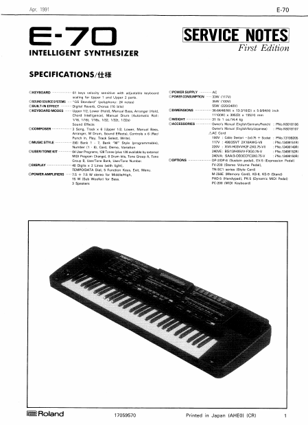 Download ROLAND E-70 Serviceanleitung Englisch (26 Seiten) 15.90 EUR